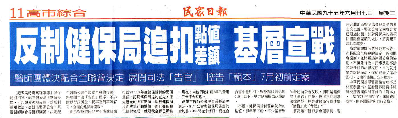 反對健保局追扣點值差額,醫師團體決配合全聯會決定展開「司法」告官