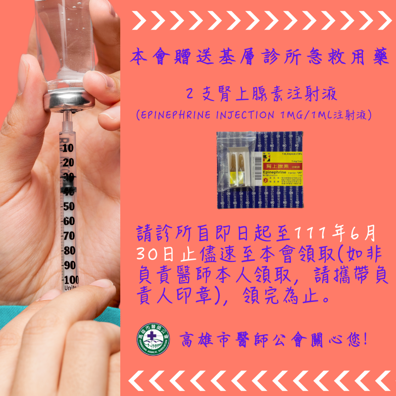 111.04.15【贈送基層診所急救用藥2支,即日起至6月30日,領完為止】